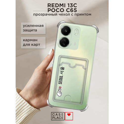 Чехол на Xiaomi Redmi 13C/Poco C65 (Сяоми Редми 13C/Поко С65) с картой и принтом Любовь к Сеулу