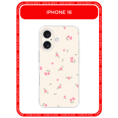 Чехол на Apple iPhone 16 / Айфон 16 с принтом Розовые цветочки на бежевом