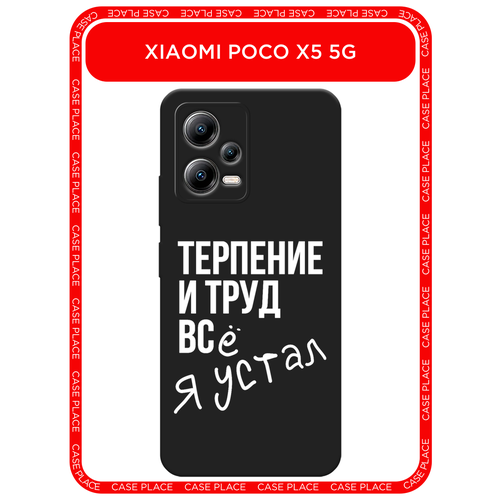 Черный матовый чехол на Xiaomi Poco X5 5G / Сяоми Поко X5 5G с принтом Терпение и труд