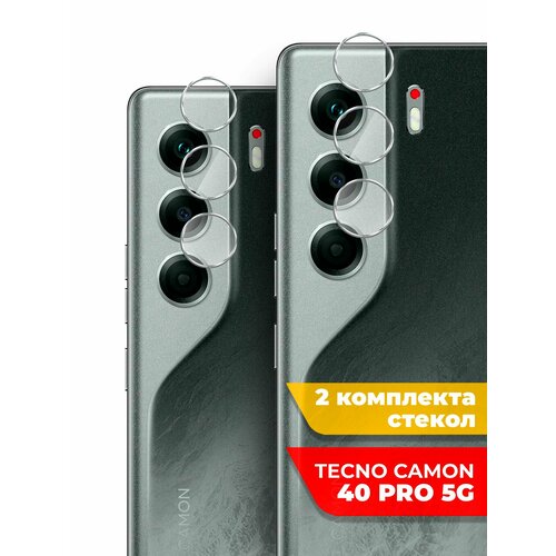 Защитное стекло на Камеру для Tecno Camon 40 Pro 5G, 2 комплекта, (гибридное: пленка+стекловолокно), прозрачное силиконовая клеевая основа тонкое Hybrid Glass, Miuko