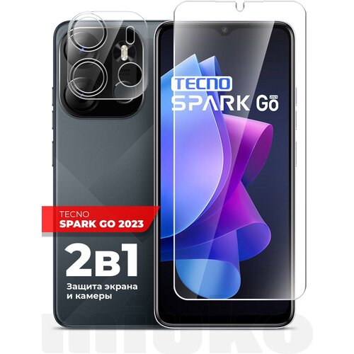 Защитное стекло на Tecno Spark Go 2023 (Техно Спарк Гоу) на Экран и Камеру, (гибридное: пленка+стекловолокно), прозрачное тонкое Hybrid Glass, Miuko