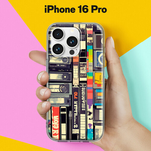 Силиконовый чехол на iPhone 16 Pro с принтом "Кассеты" с прозрачными бортиками