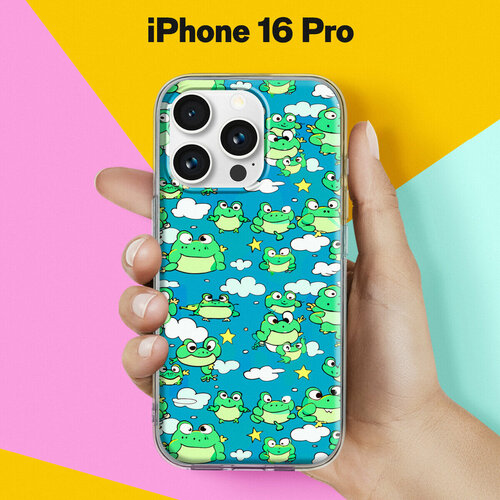 Силиконовый чехол на iPhone 16 Pro с принтом "Лягушки и облака" с прозрачными бортиками