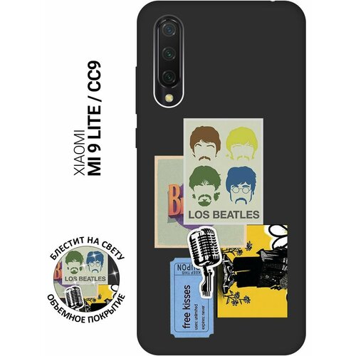 Матовый Soft Touch силиконовый чехол на Xiaomi Mi 9 Lite, CC9, Сяоми Ми 9 Лайт, Ми СС9 с 3D принтом "Beatles Stickers" черный