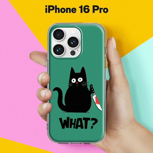 Силиконовый чехол на iPhone 16 Pro с принтом "What?" с прозрачными бортиками