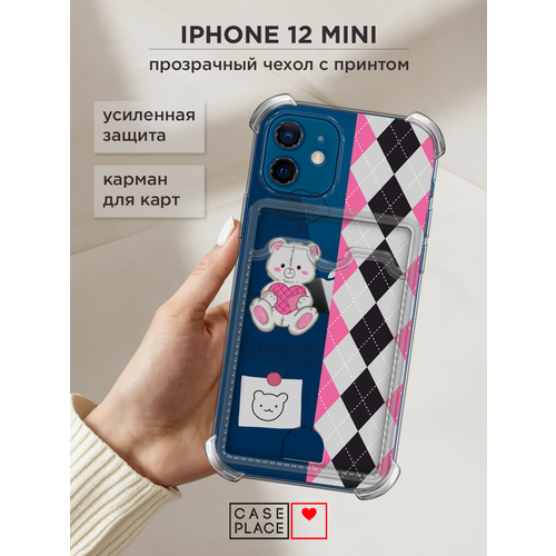 Чехол на Apple iPhone 12 mini (Айфон 12 Мини) с картой и принтом Серый плюшевый мишка