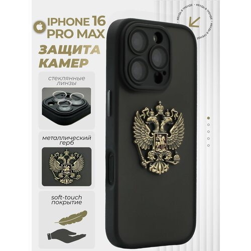 Чехол на iPhone 16 Pro Max с защитой камеры герб России