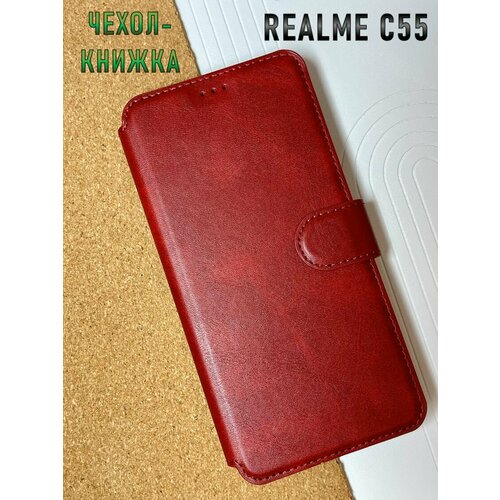 Чехол книжка для Realme C55 кожаный с магнитной застежкой, Реалми С55 (Ц55) с хлястиком , с функцией подставки