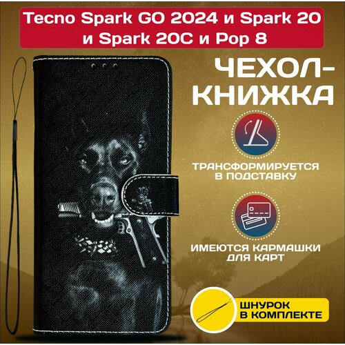 Чехол книжка wallet case на Tecno Spark GO 2024 и Spark 20 и Spark 20C и Pop 8 с рисунком (Доберман)