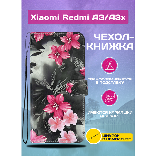 Чехол книжка wallet case на Xiaomi Redmi A3 и A3X и Poco C61 / Редми А3 и А3Х и Поко С61 с рисунком (Цветы лилии)