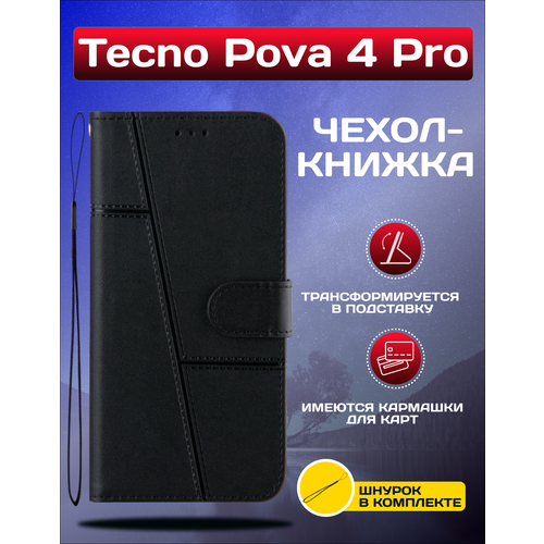 Чехол книжка wallet case на Tecno Pova 4 Pro / Техно Пова 4 Про (Черная)