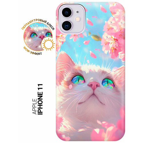 Силиконовый чехол на Apple iPhone 11 с принтом "Кот в ветвях сакуры"