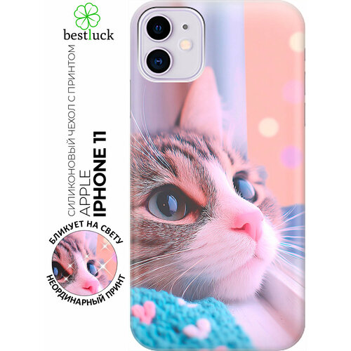 Силиконовый чехол на Apple iPhone 11 с принтом "Котик у подоконника"