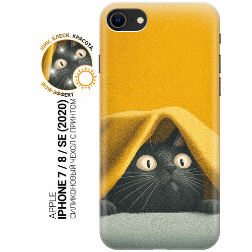 Силиконовый чехол на Apple iPhone SE (2022) / SE (2020) / 8 / 7 с принтом "Таинственный кот под солнечным покрывалом"