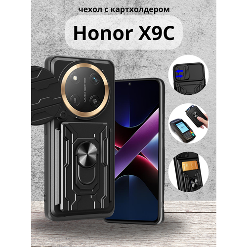 Чехол противоударный с картхолдером на Honor X9C / Хонор Х9С (Черный)