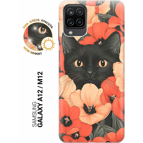 Силиконовый чехол на Samsung Galaxy A12 / M12 с принтом "Котик в маках"