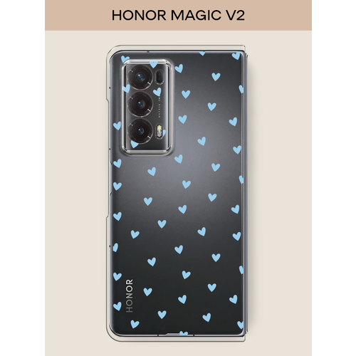 Чехол на Honor Magic V2 / Хонор Меджик V2 с принтом Голубый сердечки, прозрачный