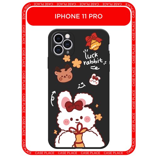 Черный матовый чехол на Apple iPhone 11 Pro / Айфон 11 Про с принтом Праздничный кролик рисунок 2