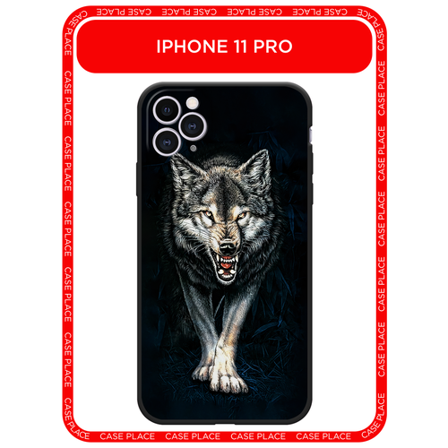 Черный матовый чехол на Apple iPhone 11 Pro / Айфон 11 Про с принтом Злобный волк из ночи