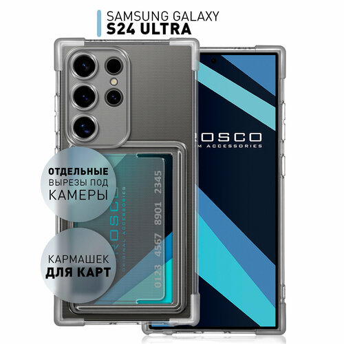 Силиконовый чехол с кармашком Rosco на Samsung Galaxy S24 Ultra (Самсунг Галакси С24 Ультра), противоударный, прозрачный