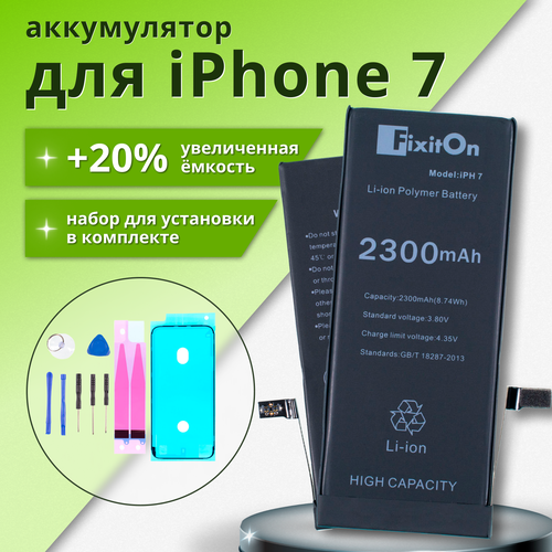 Аккумулятор увеличенной ёмкости FixitOn для iPhone 7, айфон 7 + набор отверток, скотч, лопатки для разбора