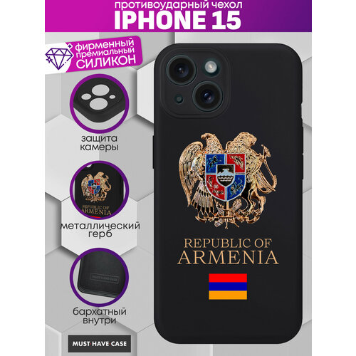 Чехол на iPhone 15 Премиум с Золотым металлическим Гербом Армении