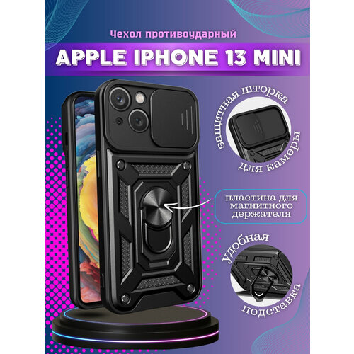 Чехол противоударный для Apple iPhone 13 Mini / Айфон 13 Мини с защитой камеры armors (Черный)