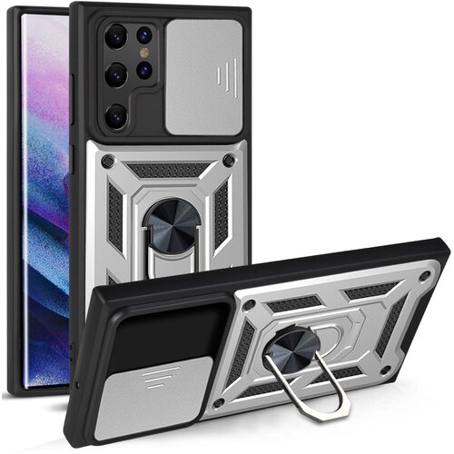 Чехол противоударный для Samsung S22 Ultra / Самсунг S22 Ультра с защитой камеры armors (Серебристый)