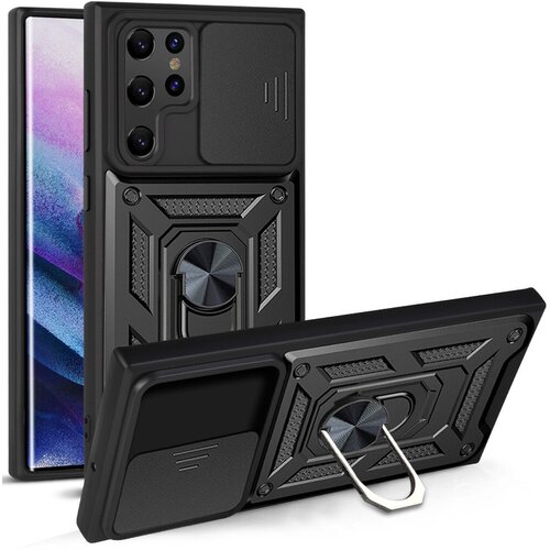Чехол противоударный для Samsung S22 Ultra / Самсунг S22 Ультра с защитой камеры armors (Черный)