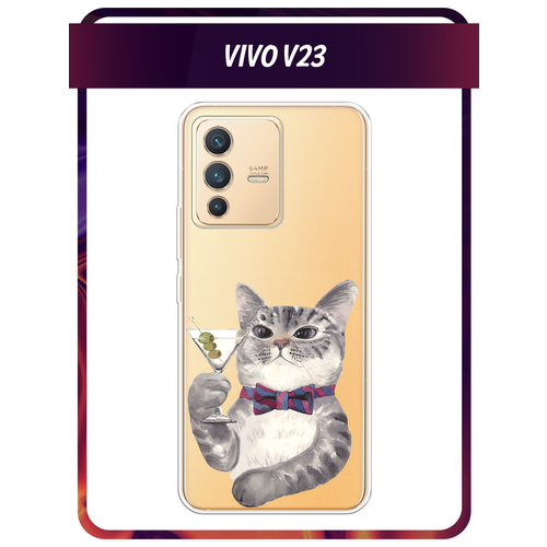 Чехол на Vivo V23 / Виво V23 с принтом Кот джентльмен, прозрачный