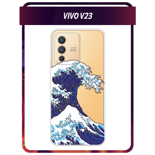 Чехол на Vivo V23 / Виво V23 с принтом Волна в Канагаве, прозрачный