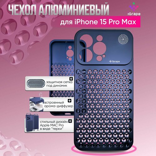 Металлический чехол (закрытый) из алюминия для iPhone 15 Pro Max, iGrape (Синий) / чехол на айфон 15 про макс