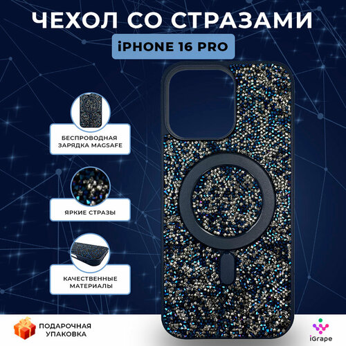 Чехол со стразами с MagSafe для iPhone 16 Pro, iGrape (Космический) / чехол на айфон 16 про