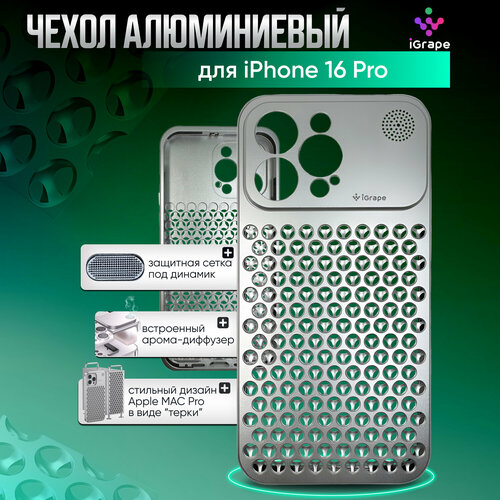 Металлический чехол (закрытый) из алюминия для iPhone 16 Pro, iGrape (Серебристый) / чехол на айфон 16 про
