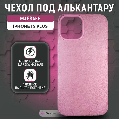 Чехол под алькантару с MagSafe для iPhone 15 Plus, iGrape (Розовый) / чехол на айфон 15 плюс