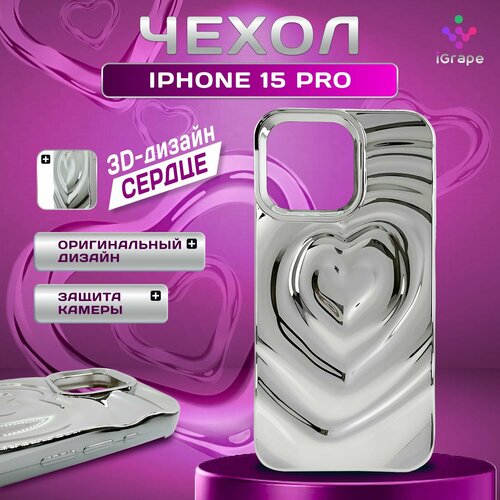 Силиконовый чехол с сердцем для iPhone 15 Pro, iGrape (Серебристый) / чехол на айфон 15 про