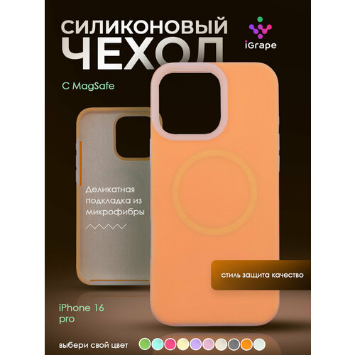Силиконовый чехол с MagSafe для iPhone 16 Pro, iGrape (Оранжевый) / чехол на айфон 16 про