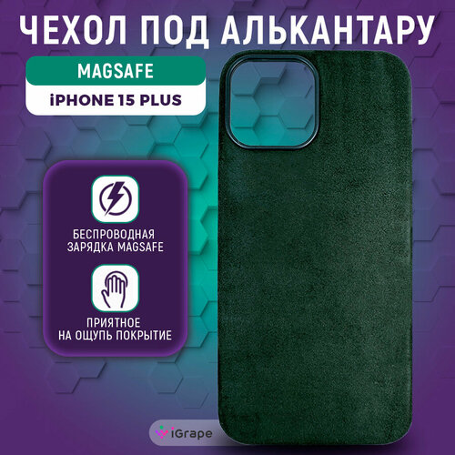 Чехол под алькантару с MagSafe для iPhone 15 Plus, iGrape (Зеленый) / чехол на айфон 15 плюс