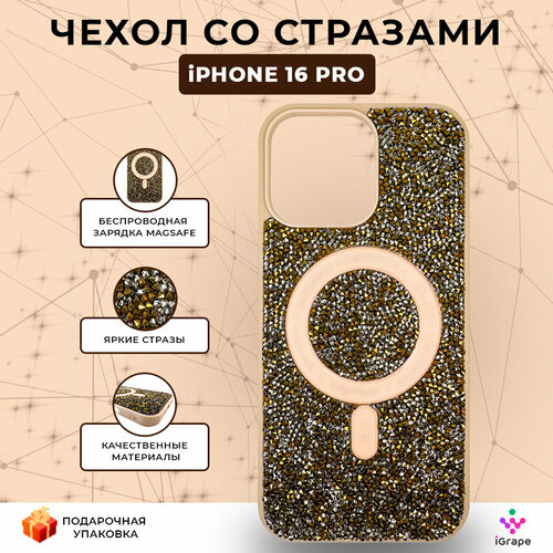 Чехол со стразами с MagSafe для iPhone 16 Pro, iGrape (Золотой) / чехол на айфон 16 про