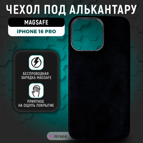 Чехол под алькантару с MagSafe для iPhone 16 Pro, iGrape (Черный) / чехол на айфон 16 про