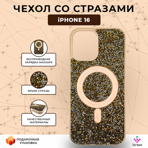 Чехол со стразами с MagSafe для iPhone 16, iGrape (Золотой) / чехол на айфон 16