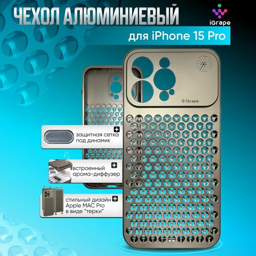 Металлический чехол (закрытый) из алюминия для iPhone 15 Pro, iGrape (Титановый) / чехол на айфон 15 про