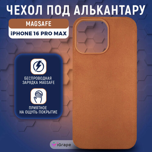 Чехол под алькантару с MagSafe для iPhone 16 Pro Max, iGrape (Светло-коричневый) / чехол на айфон 16 про макс