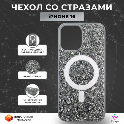 Чехол со стразами с MagSafe для iPhone 16, iGrape (Серебристый) / чехол на айфон 16