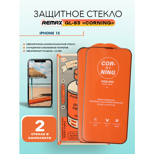 Комплект стекол для iPhone 15, REMAX CORNING GL-83, алюмосиликатное, усиленное, на Айфон 15, 2 шт