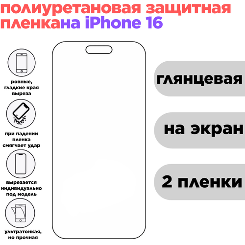 Комплект 2 шт. Гидрогелевая полиуретановая защитная пленка для iPhone 16, глянцевая