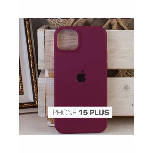 Чехол для iPhone 15 Plus, ЭКОLАЙН, силикон, противоударный, цвет бордовый