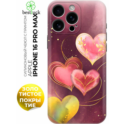 Силиконовый чехол на Apple iPhone 16 Pro Max с принтом "Четыре сердца в унисон"