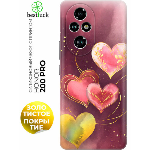 Силиконовый чехол на Honor 200 pro с принтом "Четыре сердца в унисон"