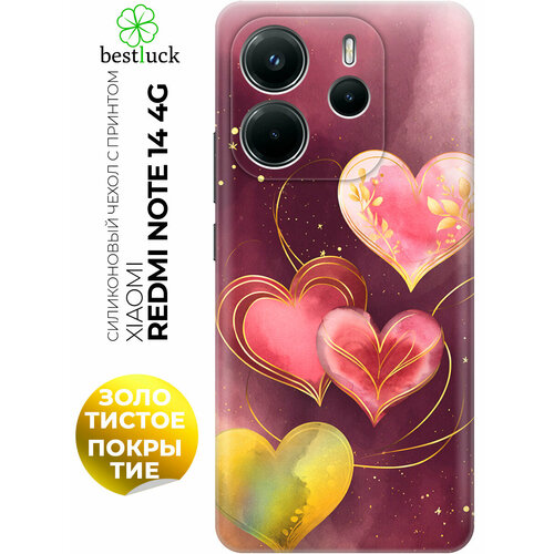 Силиконовый чехол на Xiaomi Redmi Note 14 4G с принтом "Четыре сердца в унисон"
